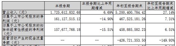 中国经济网北京10月30日电 明阳电气(301291.SZ)今日收盘报46.50元,跌幅10.04%,总市值145.17亿元。明阳电气昨日晚间公布了2025年第三季度报告。 2025年1月至9月,公司实现营业收入52.0亿元,同比增长27.14%;归属于上市公司股东的净利润4.68亿元,同比增长7.31%;上市公司股东扣除非经常性损益后的净利润4.59亿元,同比增长6.51%;经营活动产生的现金流量净额为-4.27亿元,去年同期为-1.71亿元。
